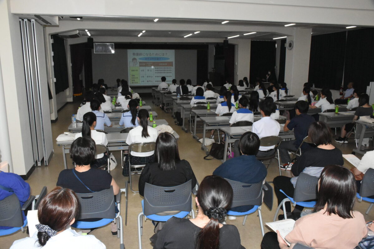 7月26日(土)午後、本校を会場に、令和7年度1回目のオープンキャンパスを高校生などを対象に開催しました。これまで「学校説明会」という名称でしたが、今年度から「オープンキャンパス」に改称。この日の参加者は、高校生54名、保護者及び教諭が19名の合わせて73名の方々に参加していただきました。