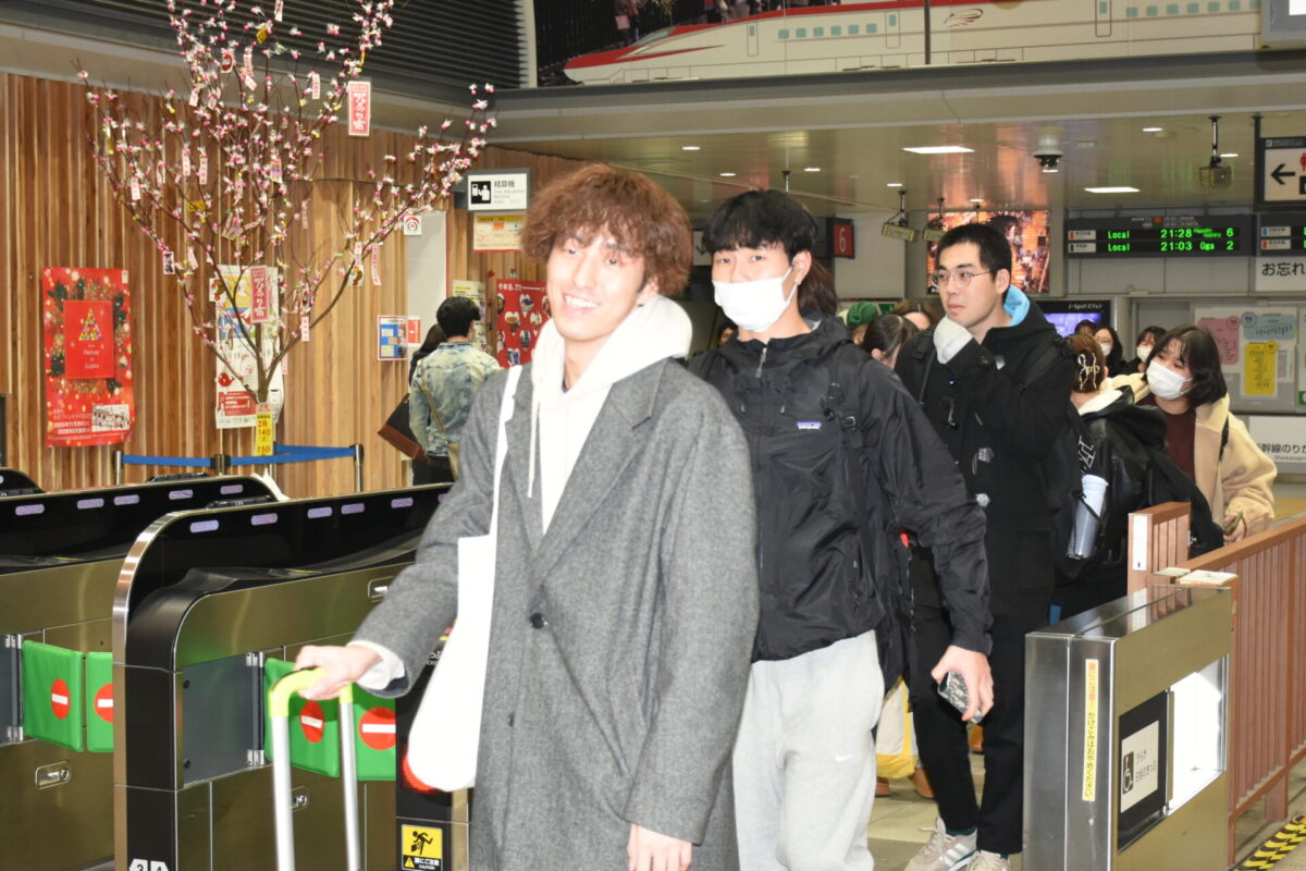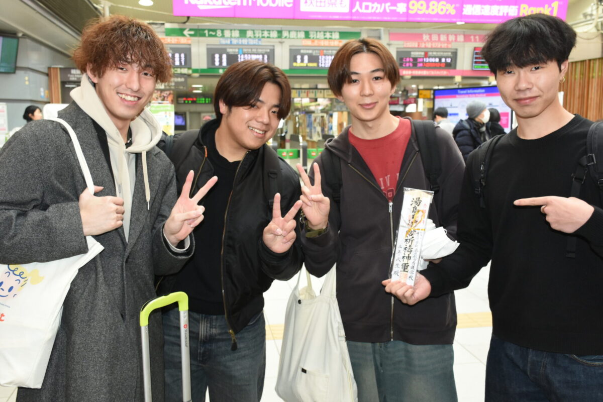 試験会場に向け全員元気に秋田を出発