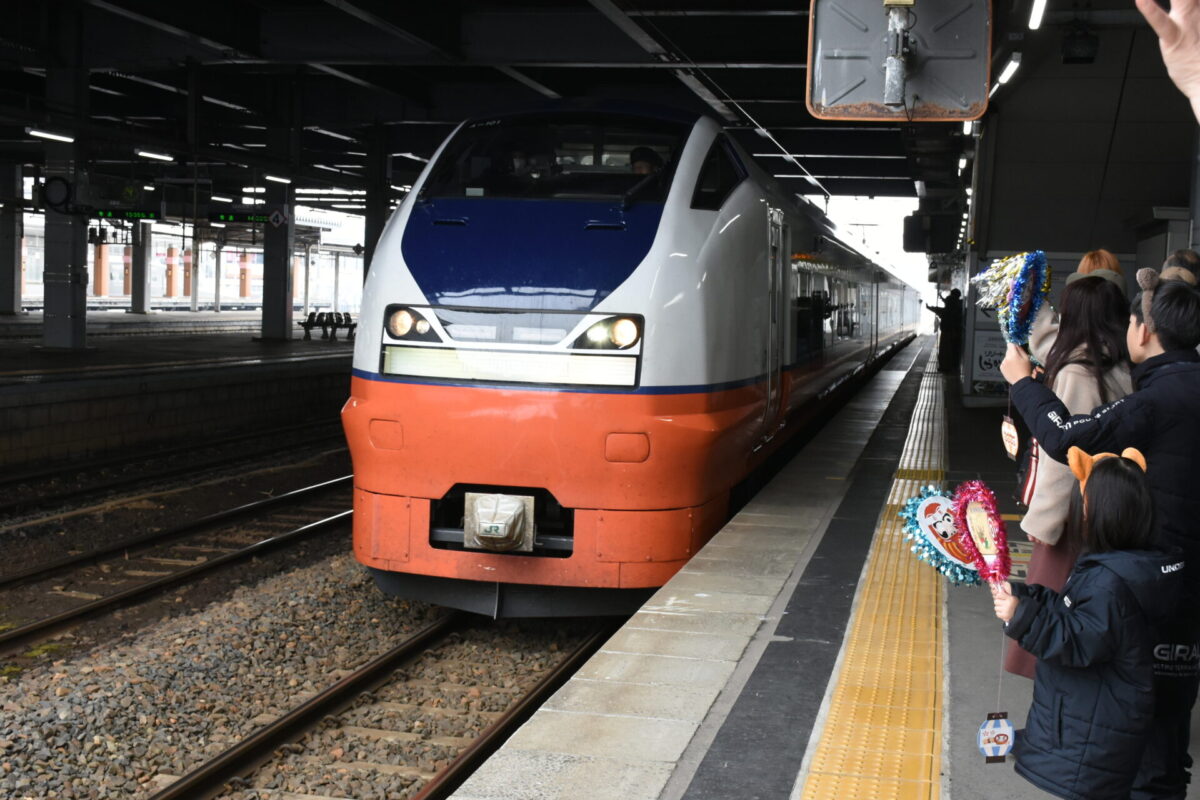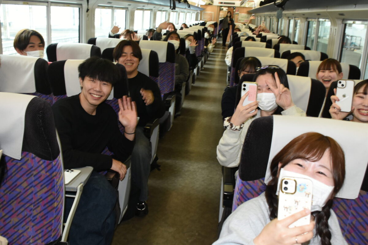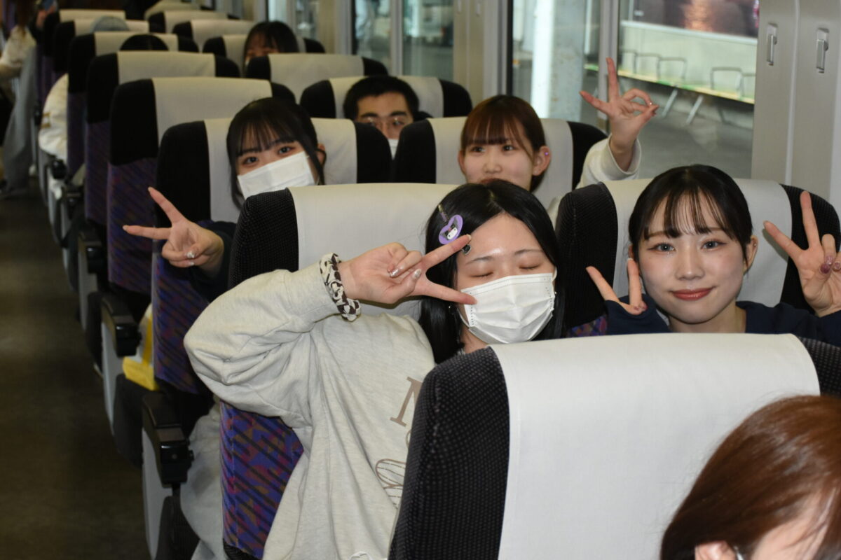 時折太陽が顔を覗かせる穏やかな天気となった2月14日のお昼、第115回看護師国家試験受験のため、試験会場の弘前に向け全員元気に臨時列車で秋田駅を出発。この臨時列車には、市内の看護学校の三年生達もたくさん乗車しており、駅のホームでは毎年、各学校ごとに先生方の愛情たっぷりのお見送りの光景を目にすることができます。今年も、本校の先生方も力一杯、激励のエールを送りましたよ。
