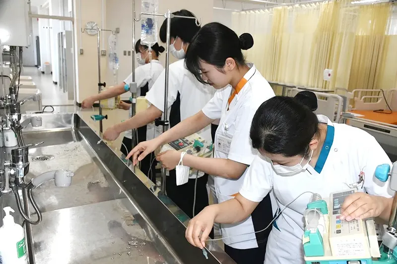 教育課程 あなたの夢が人を支える力になる! 看護師の資格取得を目指し 学業に励んでいます。 1 教育課程 2 シラバス 3 看護実習室における主な演習の様子 令和7(2025)年4月ベッドメーキング 感染予防対策6月体位変換・移乗 洗髪手洗・足洗バイタルサイン測定7月全身清拭10月食事陰部洗浄・オムツ交換11月フィジカルアセスメント 12月浣腸導尿令和8(2026)年2月筋肉注射成人・老年期の生命の危機にある人の看護小児看護学 点滴注射演習点滴静脈内注射吸引 PDFファイル 教育課程 シラバス